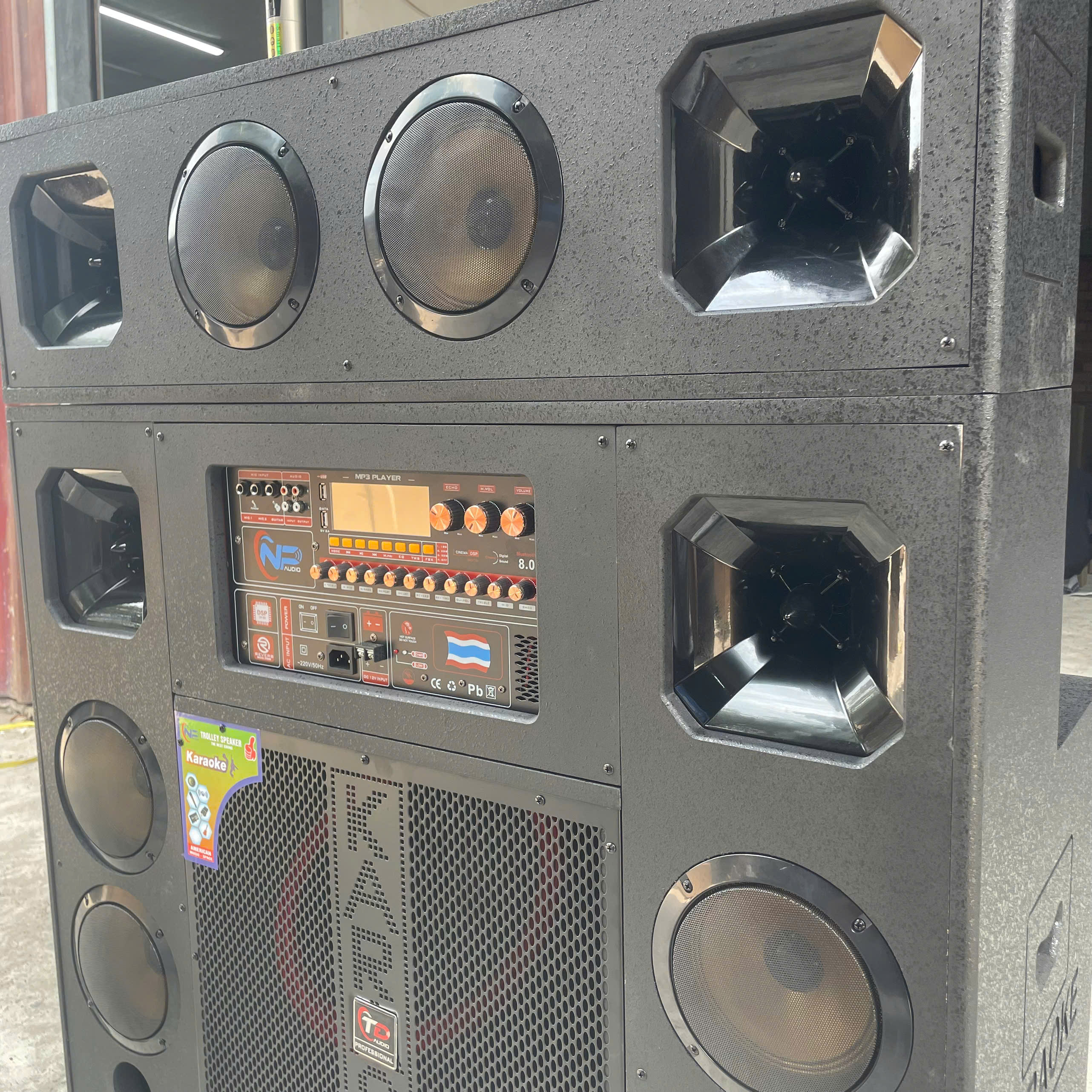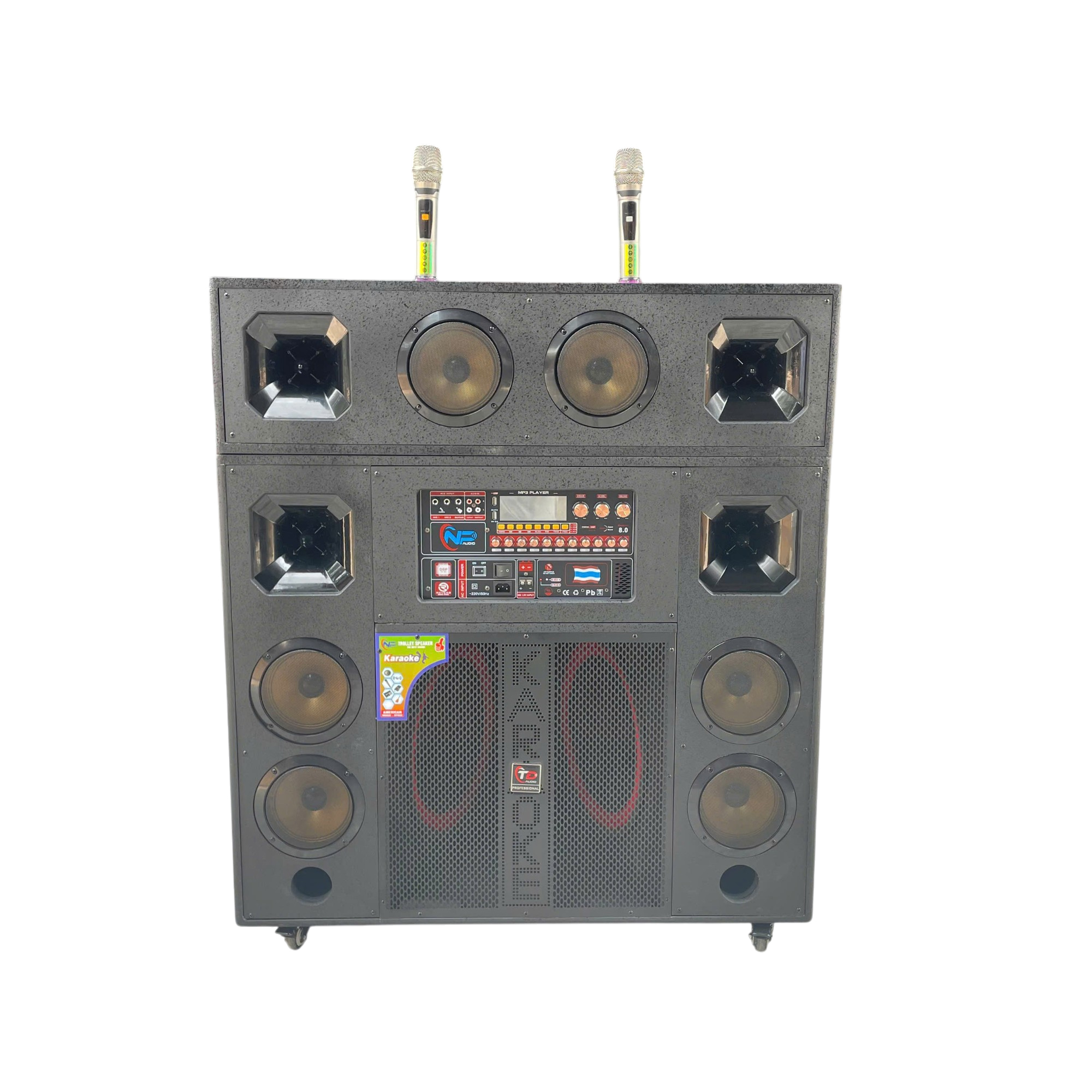 Trang bị đến 2 loa bass 40cm, N62 cho âm trầm sâu và vang, kết hợp cùng 6 loa trung 16cm cho tiếng mid rõ ràng, mượt mà và 4 treble 250 mang đến âm cao sắc bén, chi tiết. Cấu hình loa nhiều tầng giúp âm thanh lan tỏa đều khắp không gian, phù hợp cả trong nhà lẫn ngoài trời.
