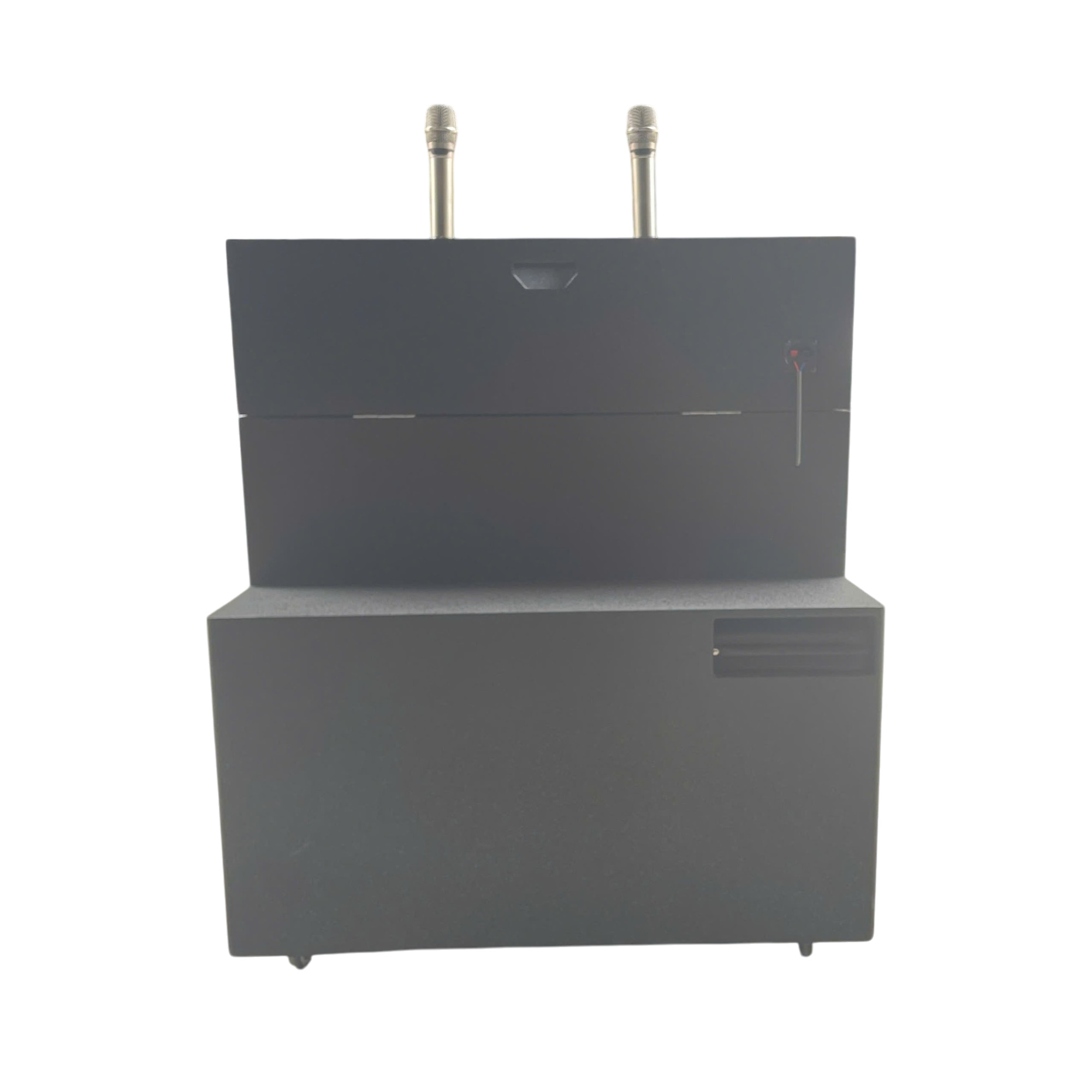 Sản phẩm đi kèm 1 cặp micro không dây kim loại chuẩn UHF, kết nối ổn định, âm thanh rõ, chống hú rít tốt và cực kỳ thích hợp để hát karaoke hoặc thuyết trình. Vỏ micro bằng kim loại tạo cảm giác chắc chắn, sang trọng khi cầm tay.